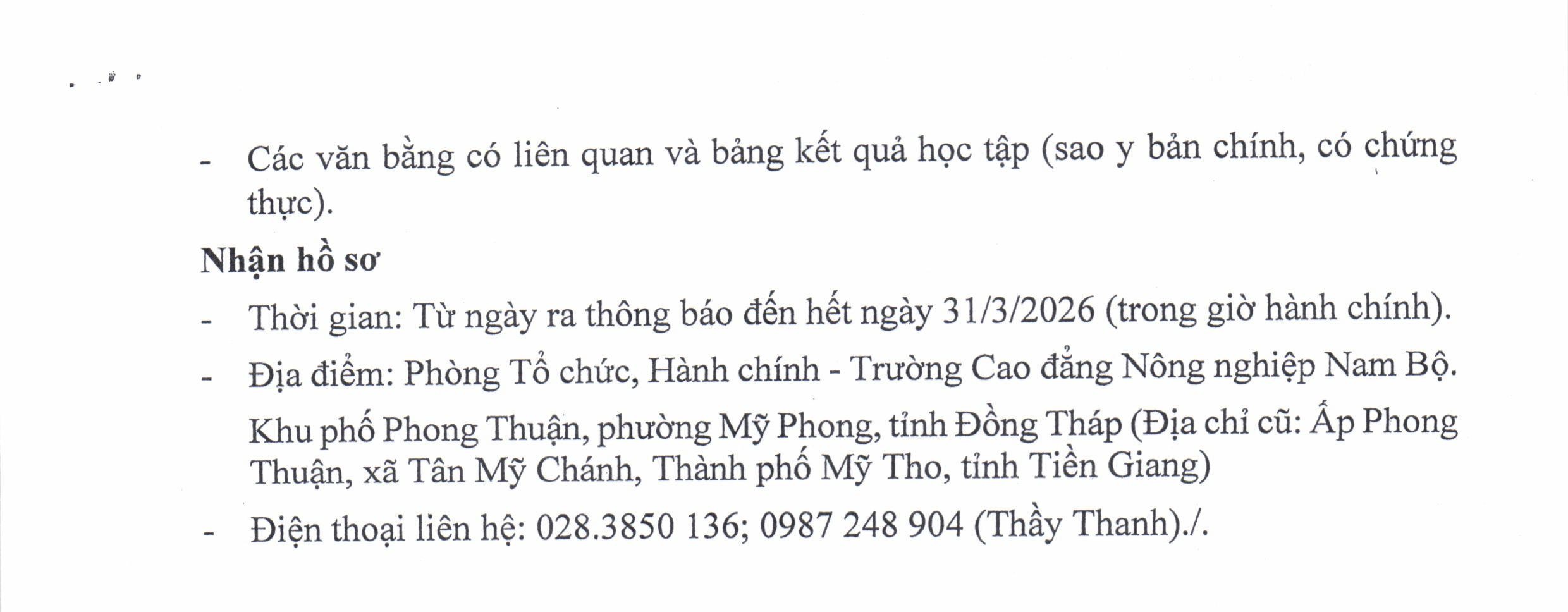 THÔNG TIN TUYỂN SINH NĂM 2026